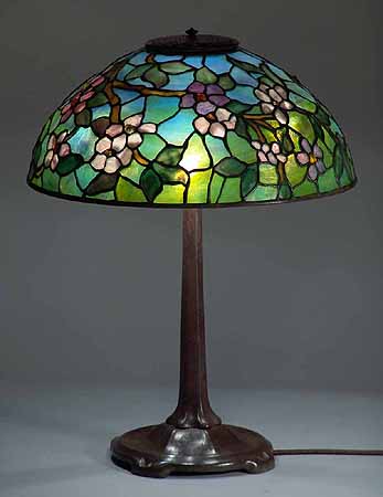 16" APPLE BLOSSOM #1455 Tiffany Lamp shade & SMALL STICK Bronze casted Tiffany Lamp base #533
